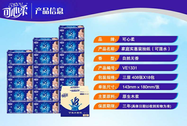 可心柔 V8系列CoRou云柔系列白色木浆110抽